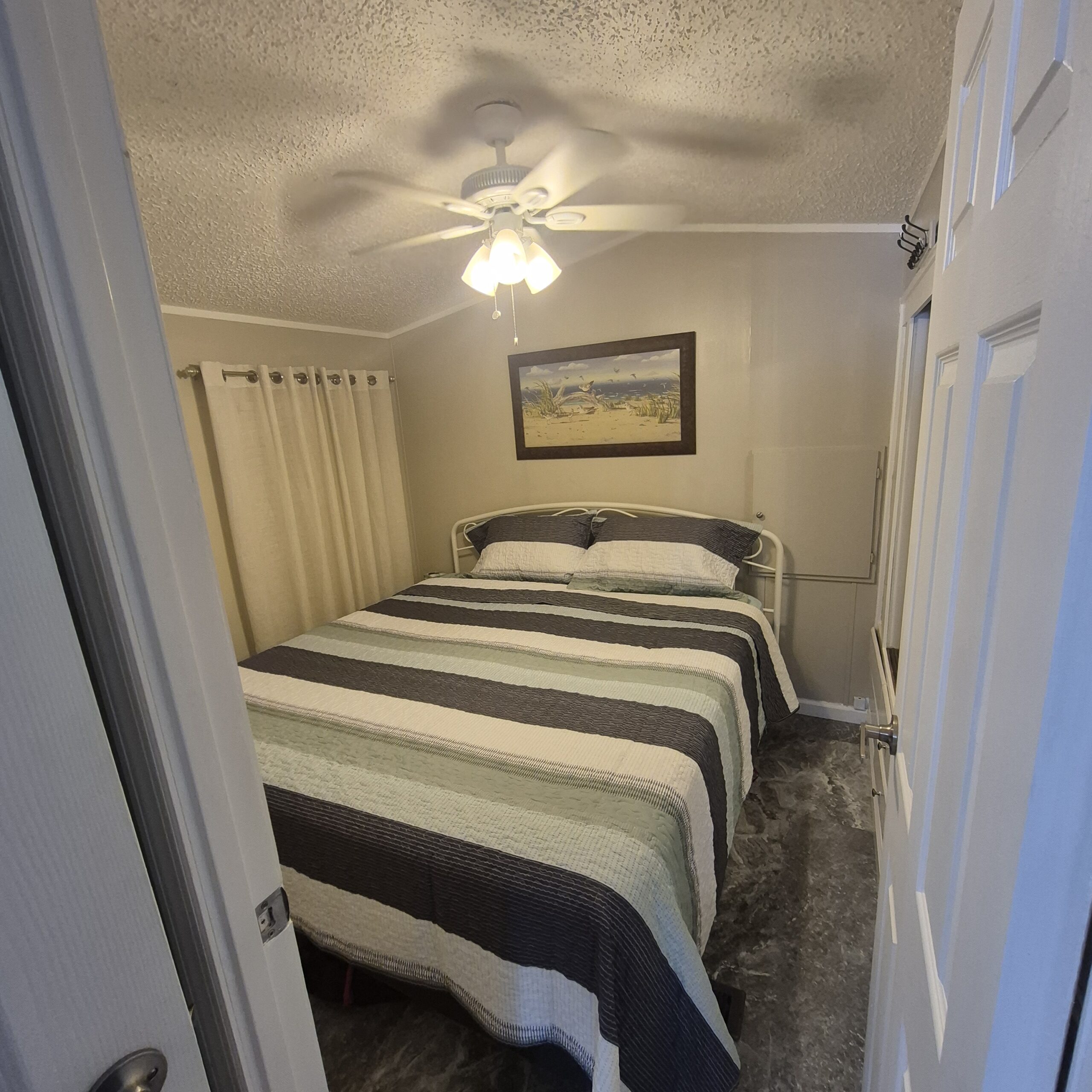 - 1 spacious bedroom with a queen bed