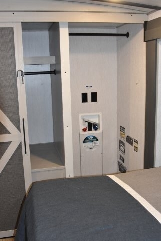 Also included are stainless steel appliances, a clam shell awning, and solar shades.