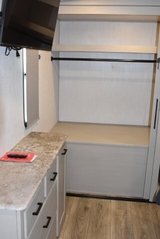 The unit features 2 closets, and a 6 drawer dresser in the bedroom.